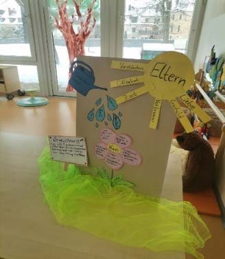 Mit großem Stolz konnten wir außerdem zwei neu erworbene Zertifizierungen präsentieren. Zum einen die Zwergensprache , die die nonverbale Kommunikation im Kindergartenalltag aktiv unterstützt. Hierfür haben wir als Team interne Weiterbildungsmöglichkeiten genutzt und können den Alltag nun durch verschiedene Gesten begleiten. Die zweite Zertifizierung ist Fit4Future, ein Sport- und Gesundheitsprogramm, das uns in den nächsten zwei Jahren begleiten wird. Dabei stehen folgende Handlungsfelder im Mittelpunkt: psychische Gesundheit, Bewegung, Ernährung und digitale Medien.